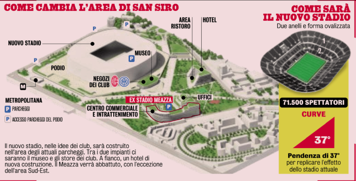 那些有远见的人们已经预见到了米兰城未来的一个“必经之地”:到了2031年时,当游客在米兰城欣赏完雄伟的大教堂、仰望过斯卡拉歌剧院的古典外观、寻找城市中达芬奇的足迹后,他们的下一站将是地铁5号线的圣西罗出口,在那里,他们将参观一座全新的体育场,这座球场将成为一座“永远跳动的建筑”:它在比赛日将爆发出巨大的能量,而在日常的每一天也会持续运转。